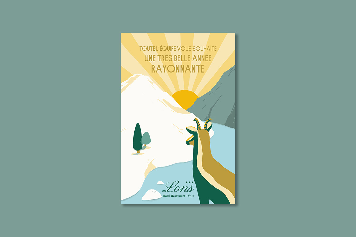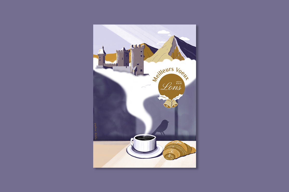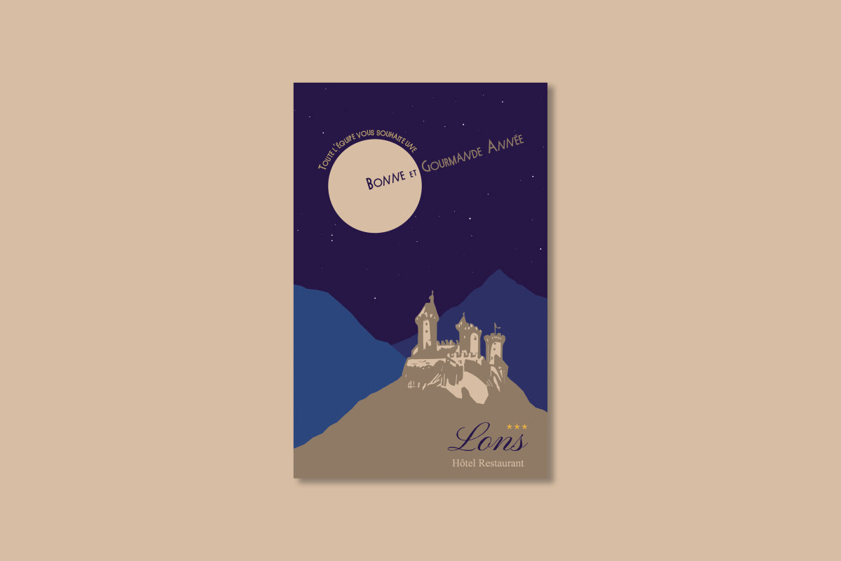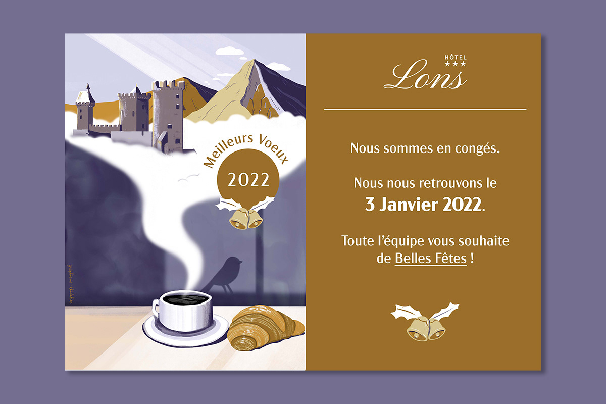 Création de plusieurs cartes de voeux pour l'Hôtel Lons au fil des ans.